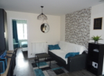 Appartement de type 2 de 52.57m² situé au 1er étage, comprenant une entrée, un salon, une cuisine meublée, une chambre, une salle de bain et un wc.