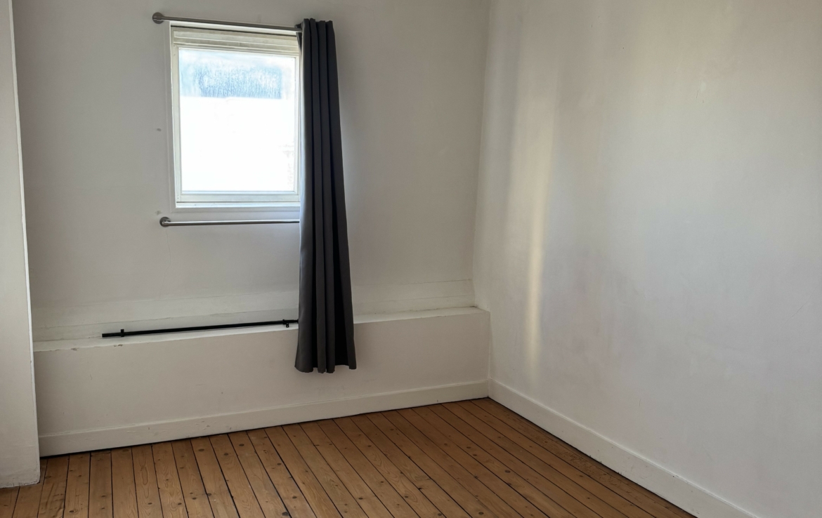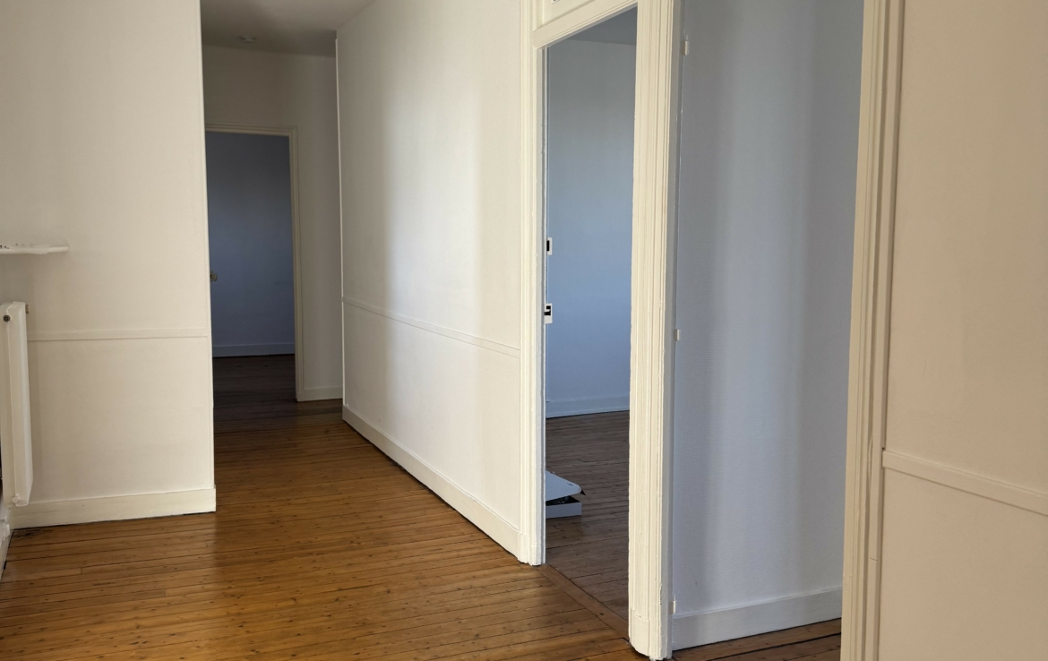 Appartement de type 4 de 106.38m² situé au 4ème étage sans ascenseur, comprenant une entrée, un séjour, une cuisine meublée et équipée (plaque-hotte), deux chambres, un cagibi, une salle de bain, un wc.